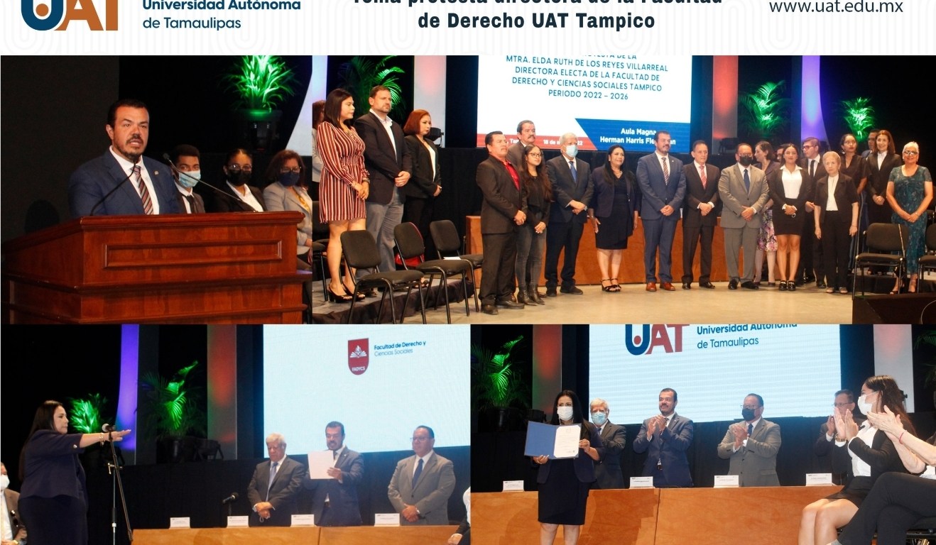 El C. P. Guillermo Mendoza Cavazos, Rector de la Universidad Autónoma de Tamaulipas (UAT), encabezó la ceremonia de toma de protesta de la Mtra. Elda Ruth de los Reyes Villarreal como Directora de la Facultad de Derecho y Ciencias Sociales Tampico (FADYCS) para el periodo 2022-2026.