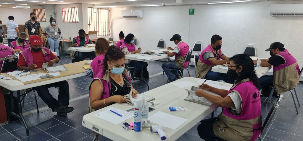 Los capacitadores electorales llevaron a cabo el sellado de cada una de las boletas, para después llevar a cabo conteo y conformar los paquetes electores dependiendo el padrón electoral de cada sección.