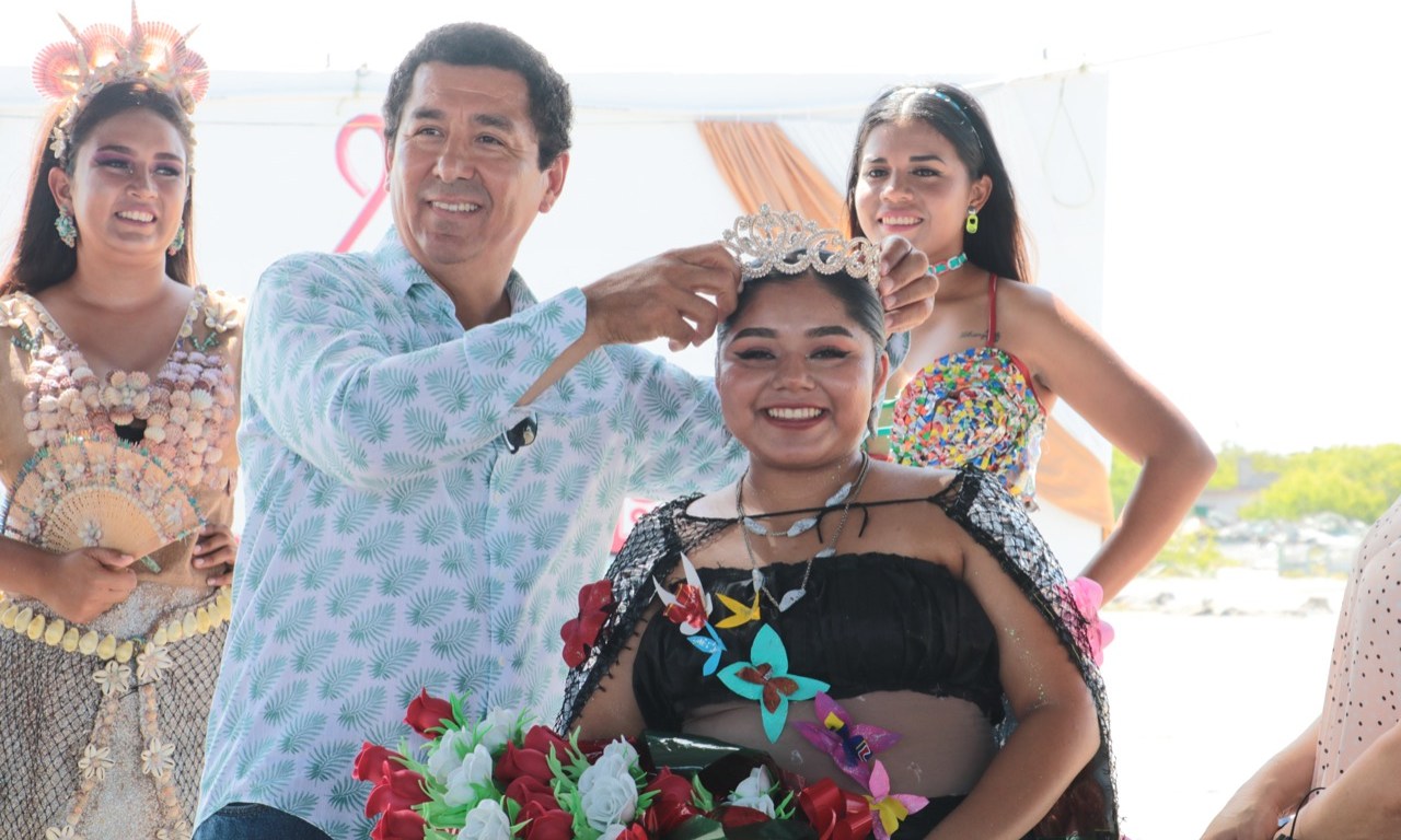 Durante su visita al Poblado Higuerillas, sede del evento, el alcalde Mario Alberto López Hernández y su esposa Marsella Huerta de López inauguraron la plaza dedicada al pescador y coronaron a la reina del festival, Gema Esperanza García, quien se presentó con un hermoso atuendo elaborado con materiales reciclables.