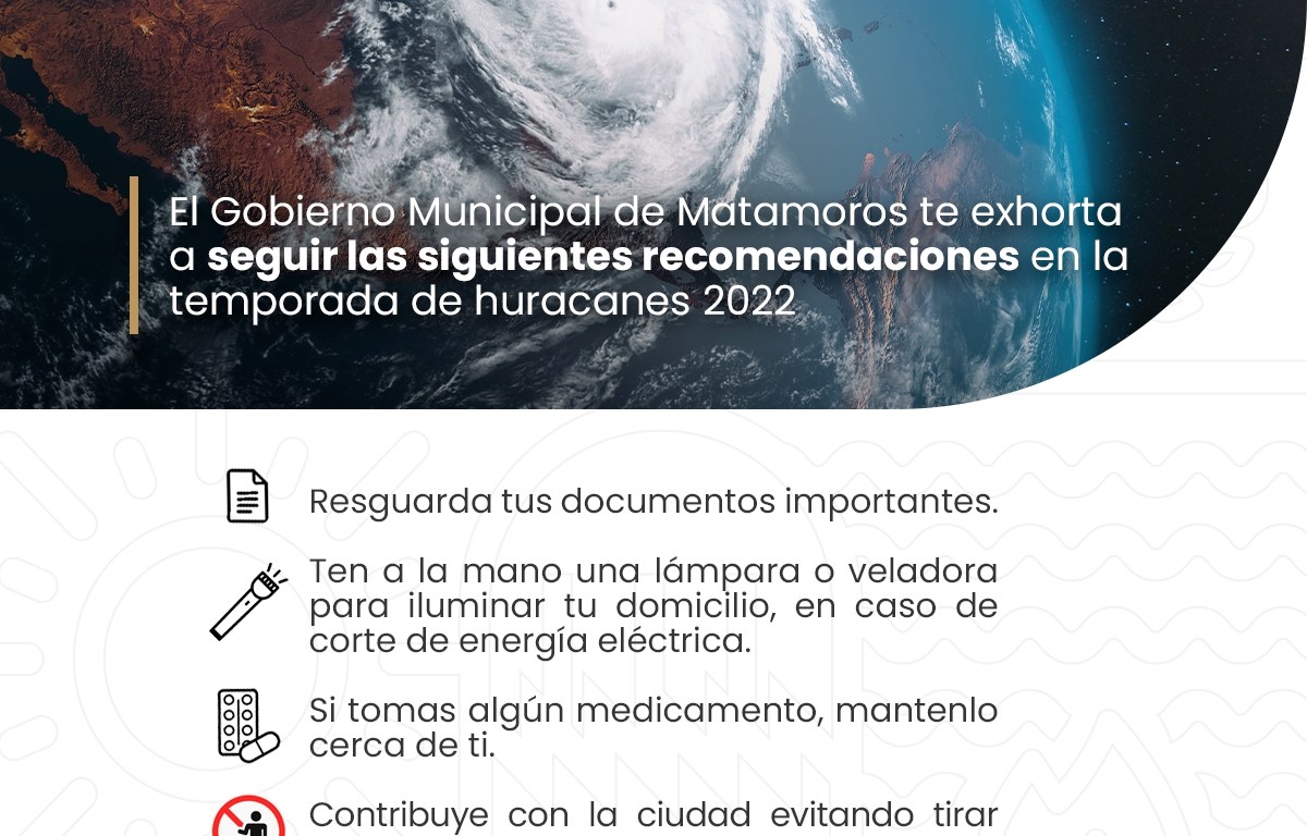 El Gobierno Municipal de Matamoros y la Dirección de Protección Civil emite recomendaciones por la temporada de huracanes.