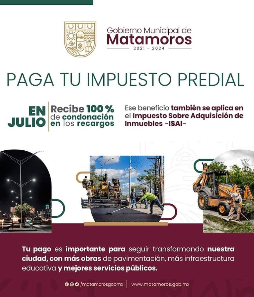 El cabildo de Matamoros aprobó el 100 por ciento de descuento en los recargo del impuesto predial.