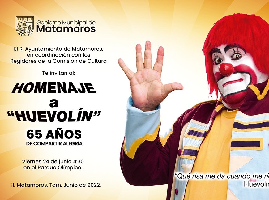 Invitación a las familias matamorenses para asistir al reconocimiento a la trayectoria artística del Payaso «Huevolín», el próximo 24 de Junio a las 16:30 horas en el parque olímpico. Continúa leyendo INVITADOS TODOS