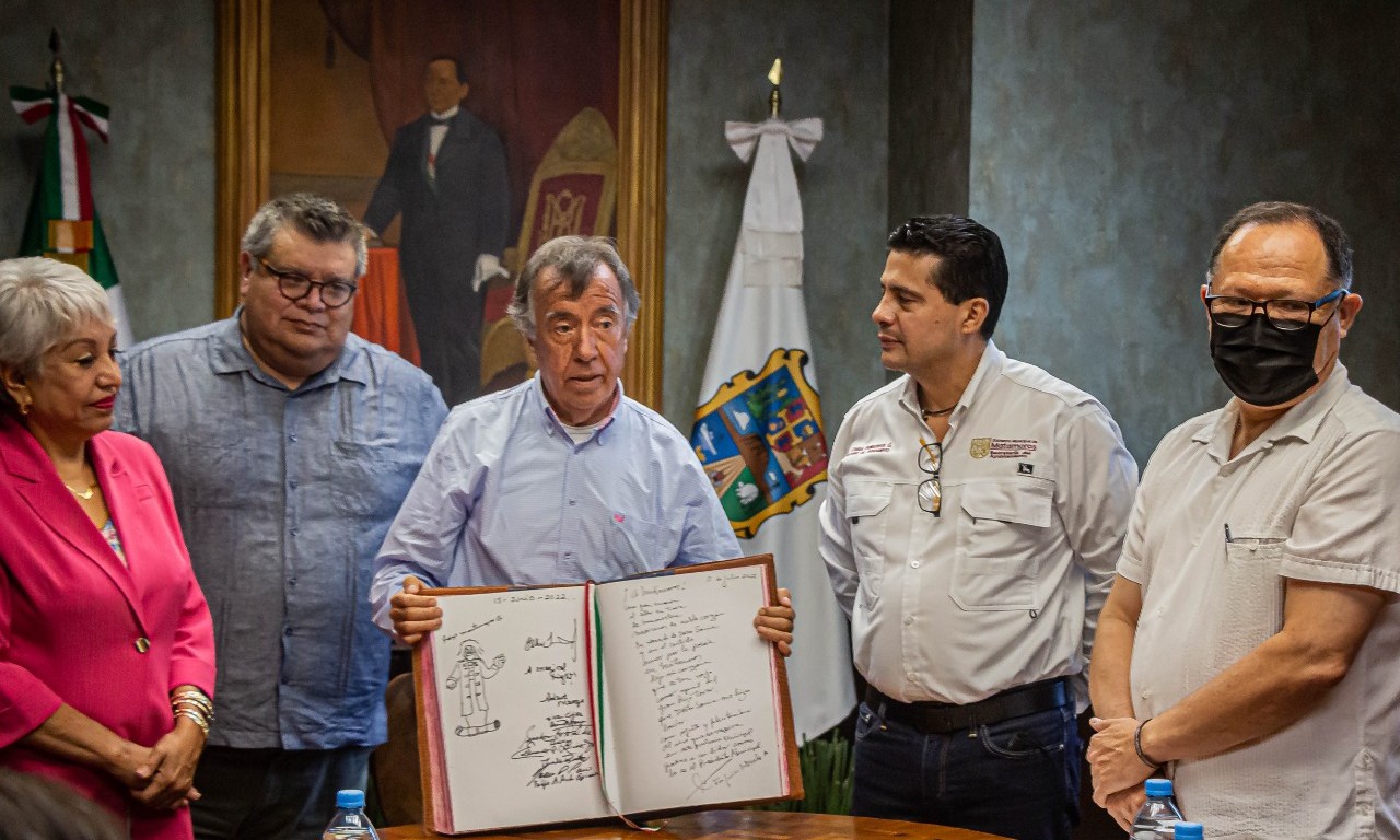 Integrantes del R. Ayuntamiento atestiguaron la firma del libro de visitantes distinguidos, entre ellos, la presidenta de la Comisión de Cultura en el Cabildo, María Rosa Pérez García, quien dijo que para Matamoros es un honor que personalidades tan distinguidas visiten esta frontera.