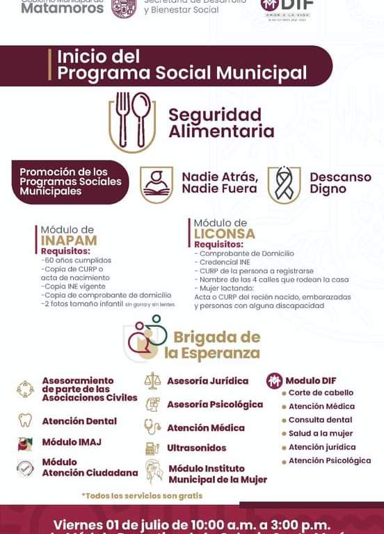 El Ayuntamiento de Matamoros iniciará el programa de Seguridad Alimentaria este viernes.