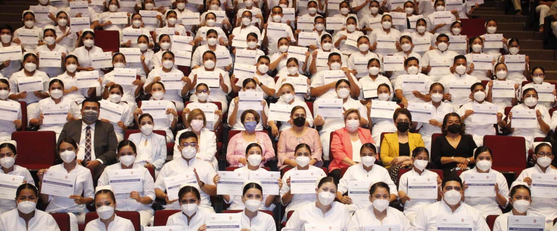 En la ceremonia se entregaron reconocimientos a quienes obtuvieron el mejor promedio de su grupo, así como la Medalla a la Excelencia Académica en Enfermería Gloria Acevedo Porras, que recibió Danna Lizbeth Muñiz Quiroz por alcanzar el más alto promedio de su generación.