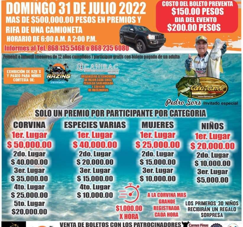 El Gobierno de Matamoros y la Barra de Abogados invitan a las familias de toda la región a participar en el Torneo de Pesca en el Puerto El Mezquital, este domingo 31 de julio.