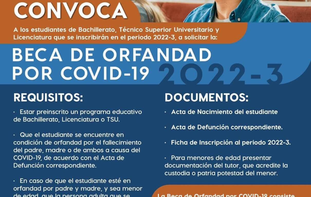 La convocatoria emitida a través de la Dirección de Becas y Estímulos Educativos de la Secretaría de Gestión Escolar de la UAT, corresponde al período escolar 2022-3 de esta casa de estudios, y busca brindar un apoyo a la población estudiantil en situación de orfandad a consecuencia de la pandemia.