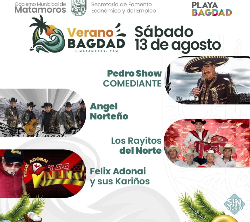 El Ayuntamiento de Matamoros continúa este sábado con Verano Bagdad con una gran fiesta en la playa.No faltes, te esperamos con tu familia Continúa leyendo CONTINÚA VERANO BAGDAD