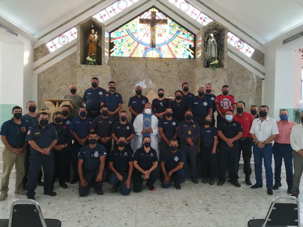 Al celebrarse este lunes el Día del Bombero, los elementos que forman parte de la corporación en Matamoros asistieron a una misa de agradecimiento por su trabajo, por su vida y la de sus familias.