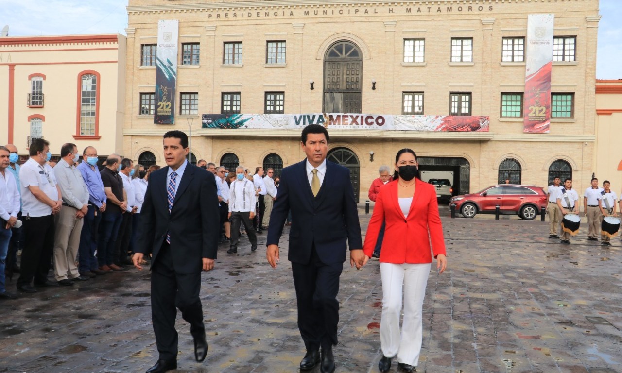 En este acto cívico del mes patrio, cuya organización correspondió a la Secretaría de Educación, Cultura y Deporte, el Presidente Municipal fue acompañado por: Marsella Huerta de López, Presidenta del DIF; por el Contralmirante Cuerpo General Diplomado de Estado Mayor, Luis Lázaro Cornejo Olivares, Comandante de la Primera Zona Naval y por el General Brigadier Diplomado de Estado Mayor, Julio César Islas Sánchez, Comandante de la Guarnición Militar de Matamoros.