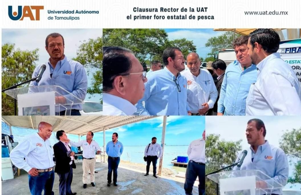 El C. P. Guillermo Mendoza Cavazos, Rector de la Universidad Autónoma de Tamaulipas (UAT), dio el mensaje de clausura del primer Foro Estatal de Pesca, que organizó el Senado de la República en coordinación con diversos organismos nacionales y estatales en la Universidad Tecnológica del Mar de Tamaulipas Bicentenario (UTMART).