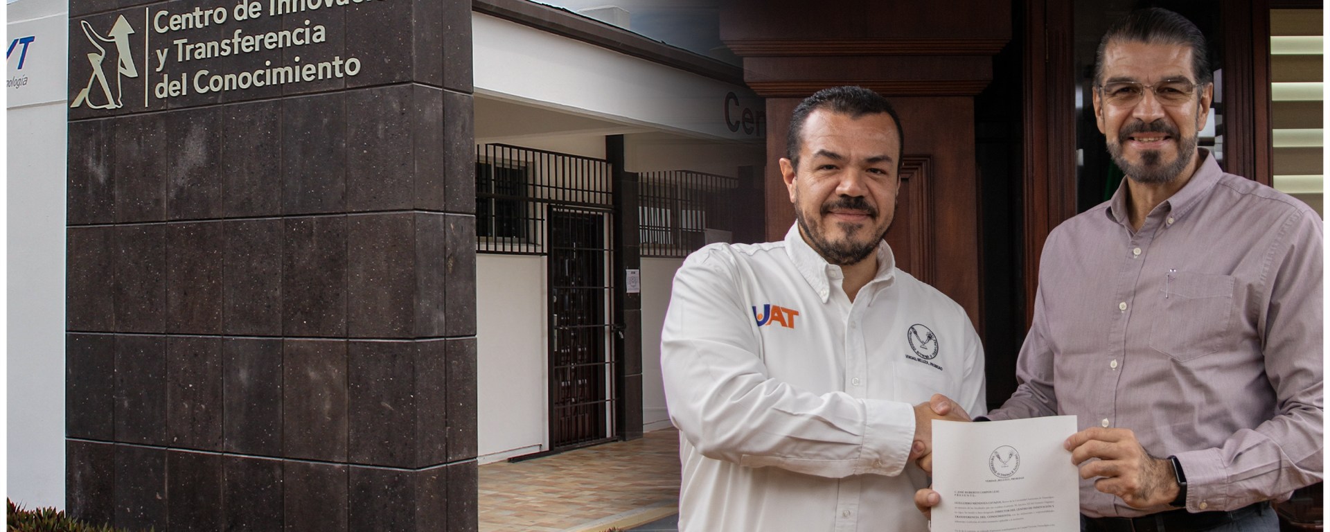 El C. P. Guillermo Mendoza Cavazos, rector de la Universidad Autónoma de Tamaulipas (UAT), entregó al Dr. José Roberto Campos Leal el nombramiento como director del Centro de Innovación y Transferencia del Conocimiento (CINOTAM) de esta casa de estudios.