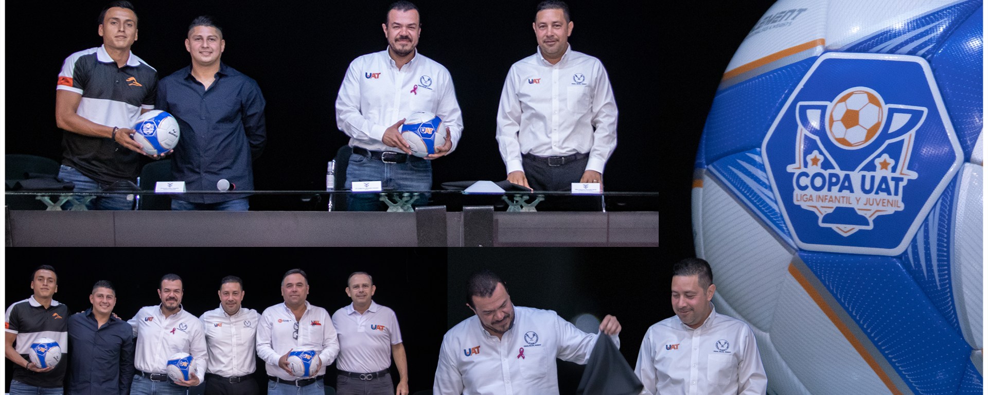 El C.P. Guillermo Mendoza Cavazos, rector de la Universidad Autónoma de Tamaulipas, presentó la nueva liga de futbol soccer “Copa UAT Estatal” que integrará la participación de equipos de diversos municipios de la entidad, con el objetivo de sumar a un mayor número de niños y jóvenes a la práctica de este popular deporte.
