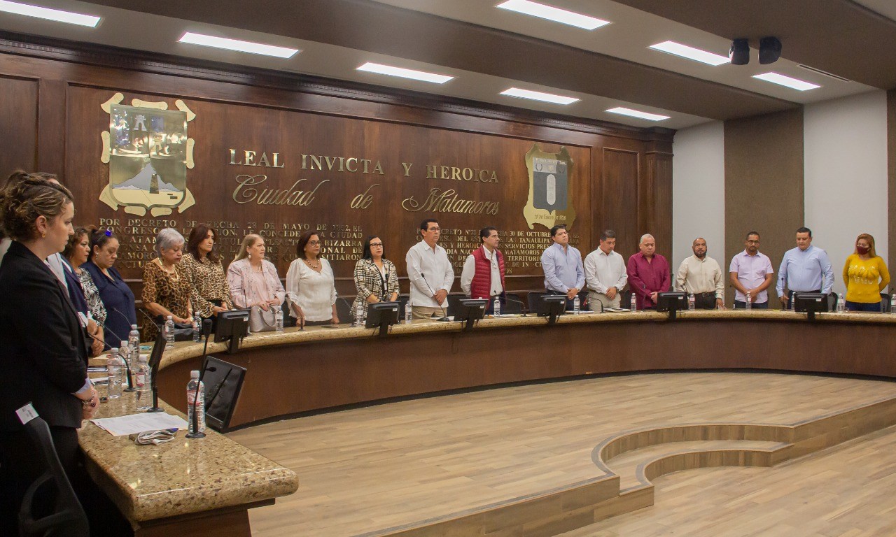 Integrantes del Republicano Ayuntamiento de Matamoros que preside el Alcalde Mario Alberto López Hernández rindieron un minuto de silencio en memoria de la Sra. Cristina Márquez Lara, madre de Octavo Regidor Profr. Andrés Andrade Márquez, presidente de la Comisión de Educación en el Cabildo.