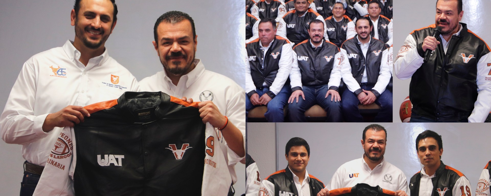El C. P. Guillermo Mendoza Cavazos, rector de la Universidad Autónoma de Tamaulipas, entregó las chamarras conmemorativas al equipo Cuernos Largos de la Facultad de Medicina Veterinaria y Zootecnia Dr. Norberto Treviño Zapata (FMVZ), por haber conseguido el campeonato de la Liga Universitaria de Futbol Americano (LUFAUAT) en su edición 2022.