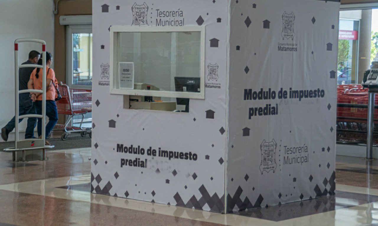El Gobierno de Matamoros a través de la Dirección de Ingresos informa a los ciudadanos que a partir del próximo lunes 2 de enero de 2023, además de las cajas de la tesorería municipal, operarán cinco módulos para el cobro del Impuesto Predial, los cuales estarán ubicados en Soriana Plaza Fiesta y Lauro Villar, en Walmart, en Parque Olímpico y en JAD de la Roberto Guerra.
