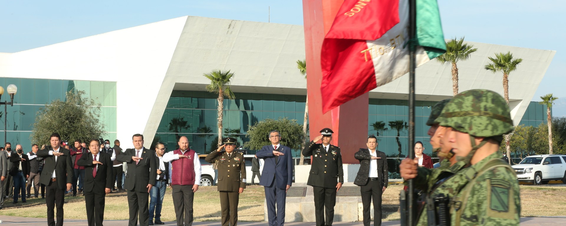 Al encabezar la ceremonia de honores, en la Plaza Cívica del Parque Bicentenario de esta capital, el gobernador Villarreal Anaya exhortó a los trabajadores del Estado a tener empatía con quienes se acercan a plantear sus asuntos y brindarles un trato digno.