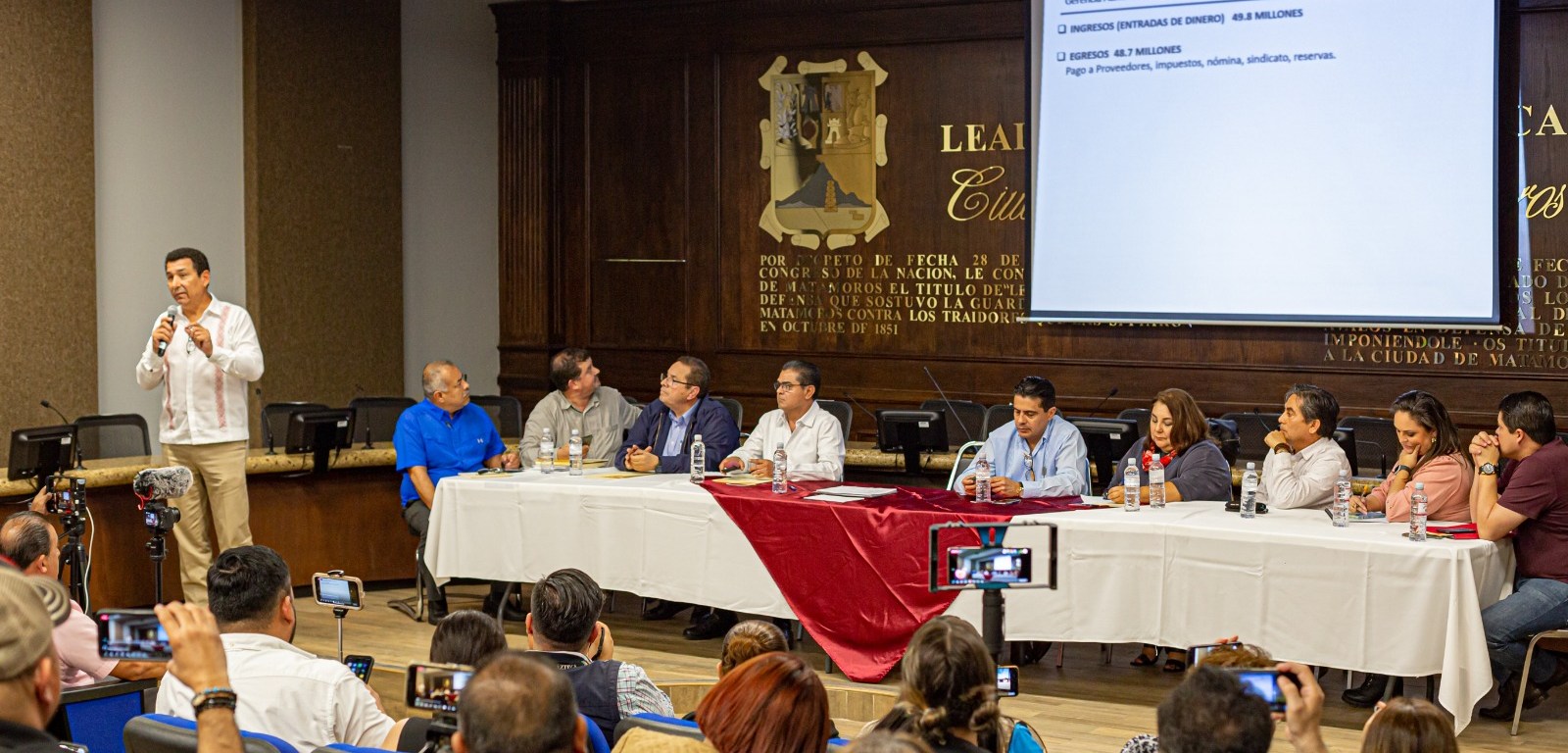 En conferencia de prensa, el Presidente Municipal de Matamoros detalló por medio de una presentación el estado actual de la paramunicipal, destacando que se encuentra totalmente “quebrada” a causa de los malos manejos administrativos, al exceso de personal y a un contrato colectivo de trabajo de los empleados sindicalizados, quienes en nómina, se llevan la mayor parte de los ingresos mensuales que tiene la JAD.