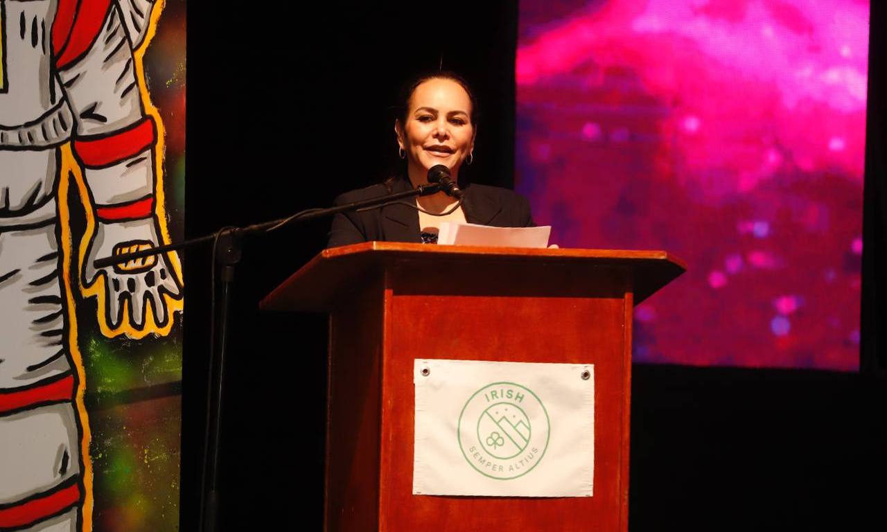 En el marco del noveno Congreso IUVE «Despegando hacia el éxito», una iniciativa organizada por el Colegio Irlandés con apoyo del Gobierno Municipal, la presidenta municipal dialogó con estudiantes de diferentes preparatorias que se dieron cita en este recinto.