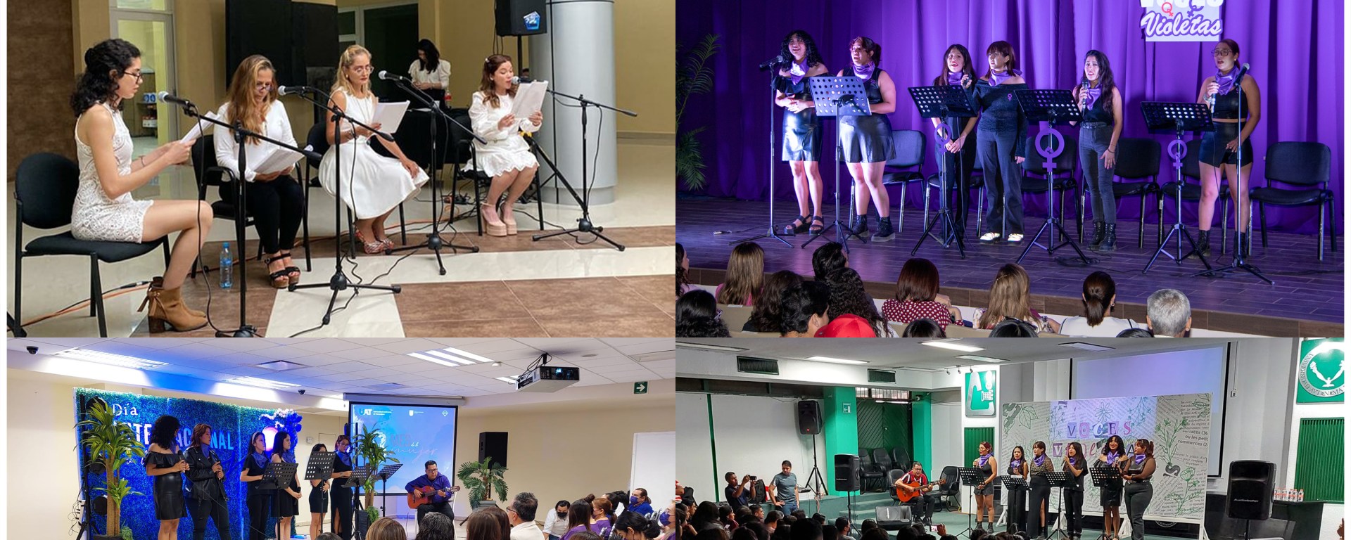 En ese contexto, la Dirección de Cultura y Arte llevó a cabo el recital denominado “Voces Violetas”, en el cual, estudiantes universitarias participaron con lecturas y canciones que resaltan las diferentes luchas por los derechos de las mujeres y la igualdad de género.