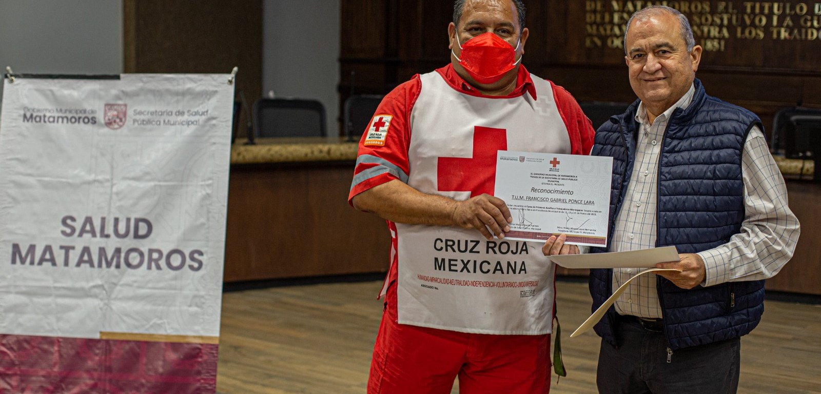 Al término de tres capacitaciones que se brindaron a empleados municipales, García Fuentes con la representación del alcalde Mario Alberto López Hernández entregó reconocimientos a los elementos de la Cruz Roja que impartieron la capacitación, entre ellos, a Francisco Ponce Lara, coordinador de Socorro de la misma institución.
