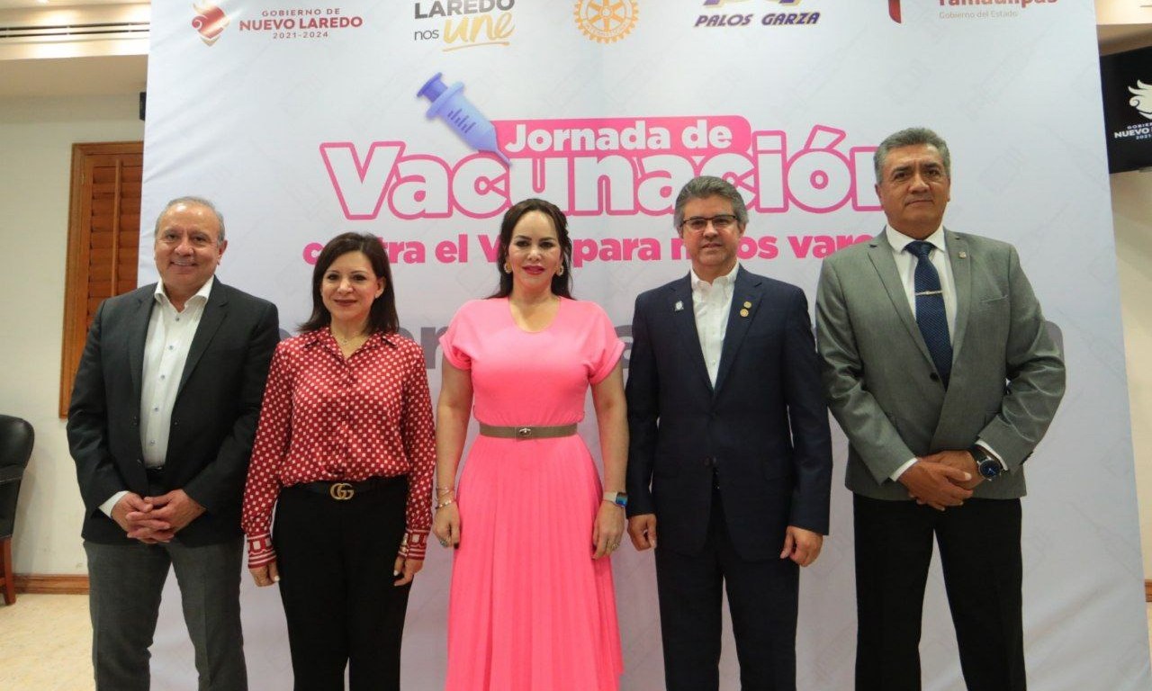 En conferencia de prensa la alcaldesa Carmen Lilia Canturosas Villarreal junto a Raúl Flores, gobernador Rotary Distrito 4130; Eduardo Cervantes Ramírez, presidente del Club Rotario Nuevo Laredo; Mario Palos Garza, presidente de Fundación PG Maratones y la Dra. Liliana Arjona Barocio, directora de Salud Municipal, dio a conocer los detalles de la campaña y reiteró el compromiso de la administración de atender y prevenir enfermedades en las familias de Nuevo Laredo.