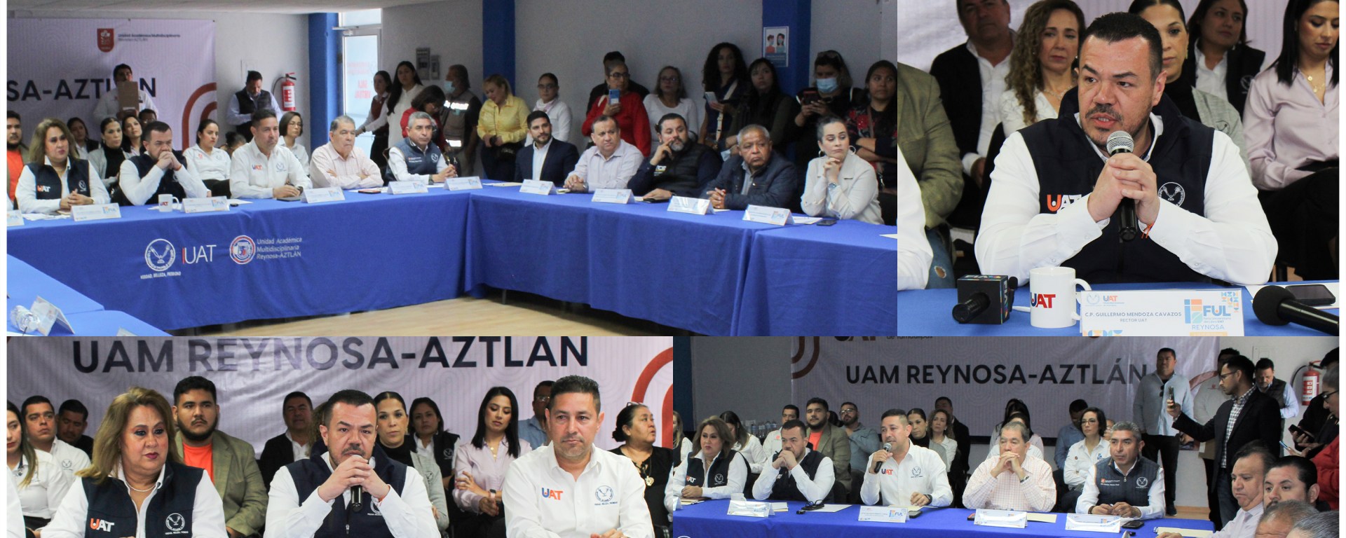 En el evento desarrollado en la Unidad Académica Multidisciplinaria Reynosa Aztlán (UAMRA), el rector dio la bienvenida a los representantes de las instituciones que conforman el Consejo Consultivo de Institutos de Educación Superior (CCIES) y que se han sumado a las actividades de la FUL 2023 en esta ciudad fronteriza.