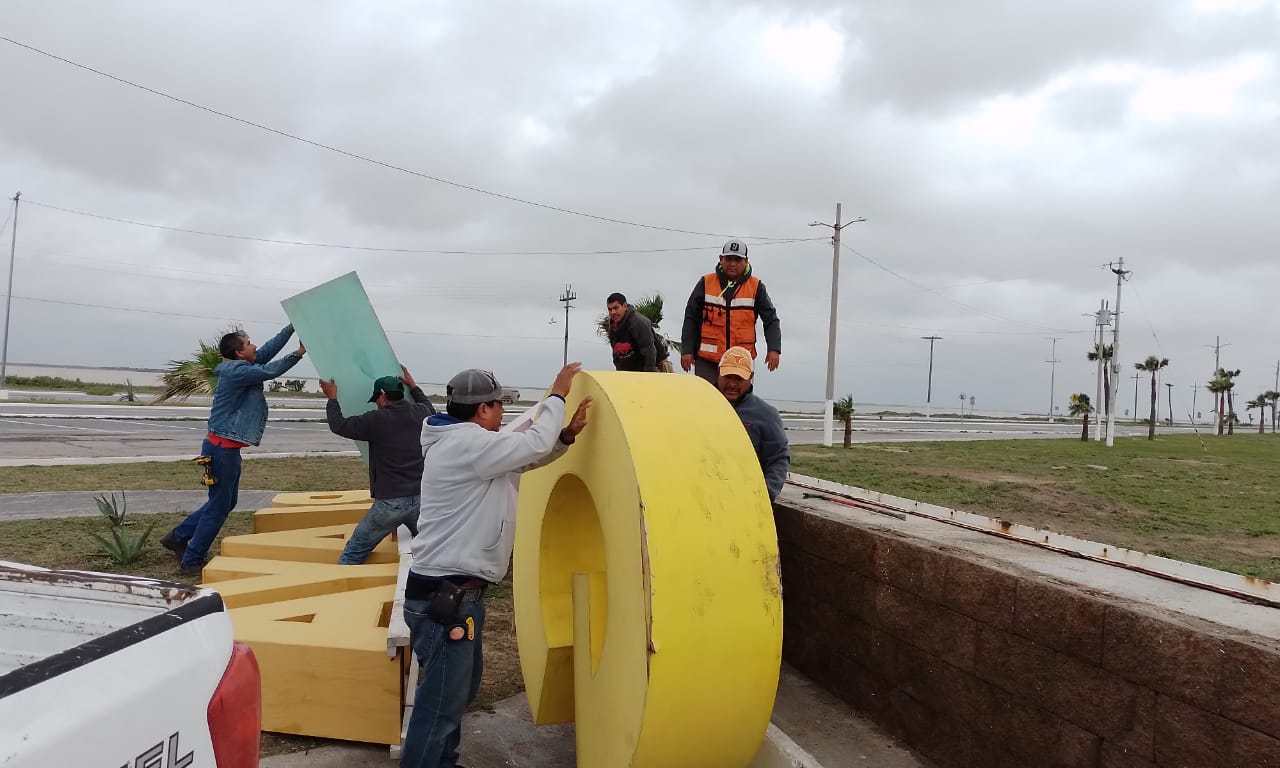 El Gobierno de Matamoros a través de la Dirección de Servicios Generales, retiró las letras que distinguen a la Playa Bagdad, las cuales fueron derribadas por los fuertes vientos que trajo la tormenta que afectó a esta ciudad y que provocó que este lunes continuara la marea alta en el paseo recreativo