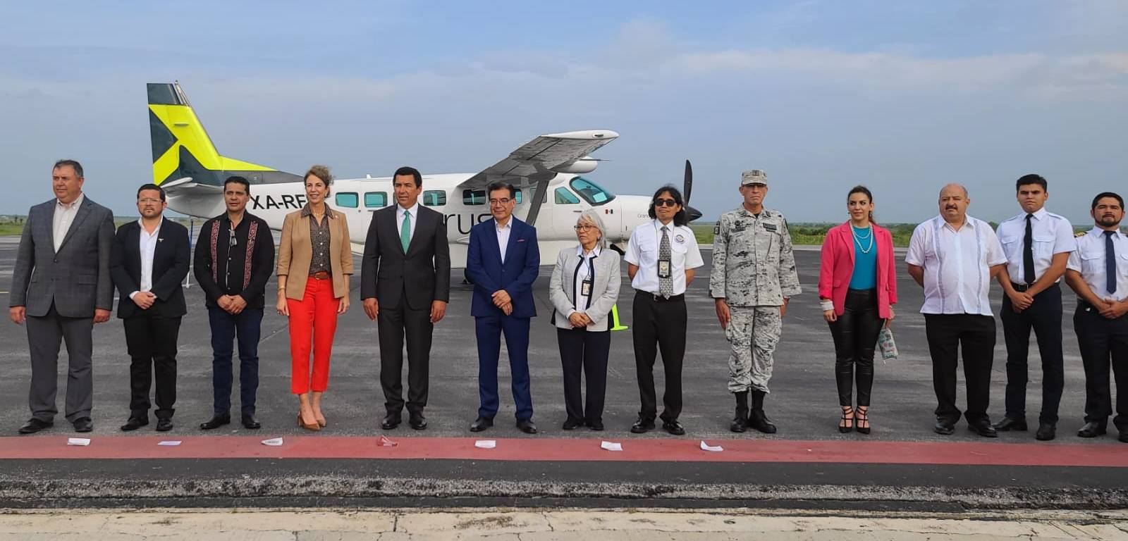 La inauguración se dió en el marco de la llegada de los primeros pasajeros provenientes de Monterrey en una aeronave Cessna Gran Caravan Ex, con matrícula XA-RFD.