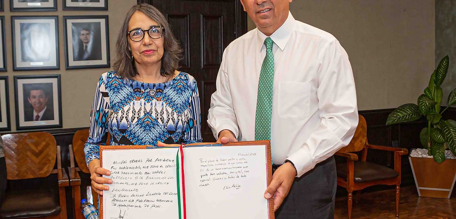 El Alcalde Mario López le hizo un reconocimiento a nombre del Gobierno de Matamoros por su labor tan distinguida, extraordinaria, sus sobresalientes logros en la literatura y por llevar el nombre de Matamoros y de Tamaulipas a nivel internacional.