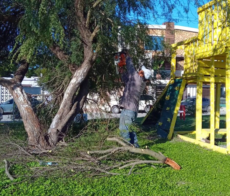 La Secretaría de Servicios Públicos Municipales a través de la Dirección de Espacios Públicos del Gobierno de Matamoros continuó este domingo con los trabajos de limpieza en las áreas verdes que resultaron afectadas tras la tormenta eléctrica registrada la madrugada del sábado.