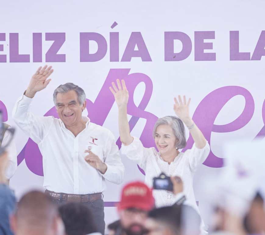 Festejan gobernador de Tamaulipas, Américo Villarreal y presidenta del DIF, María Santiago de Villarreal, a las madres en su día González, Tamaulipas.- Américo y María se sienten como en casa, reciben abrazos, caminan en medio de una multitud que los recibe con los brazos abiertos, sonríen y se toman selfies con las mamás que se han reunido bajo un gigantesco toldo blanco para celebrar en … Continúa leyendo En el Gobierno de la Transformación es el tiempo de las mujeres