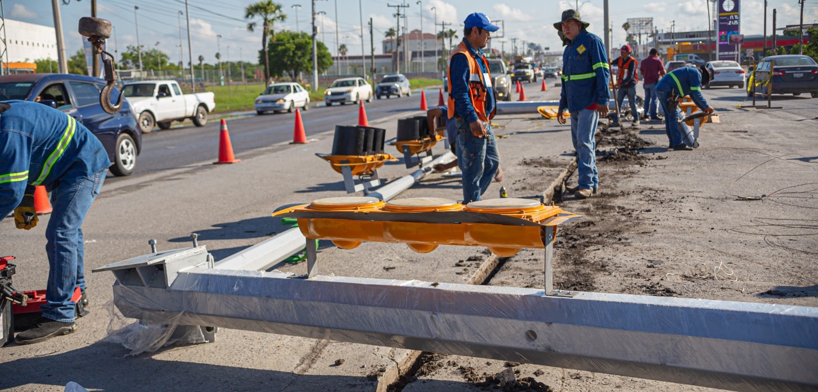 Personal de la Dirección de Reordenamiento de la Vía Pública del Gobierno de Matamoros, procedió esta mañana a la instalación del Semáforo en la Avenida Pedro Cárdenas y Marte R. Gómez, el cual garantizará mayor seguridad a los automovilistas.