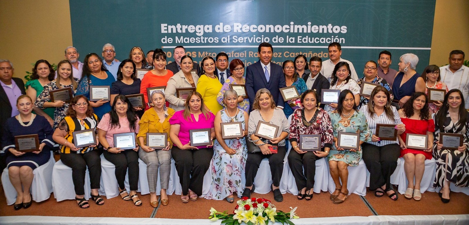 Al otorgar las medallas “Maestro Rafael Ramírez Castañeda”, por 30 años de servicio en la educación y la “Maestro Ignacio Manuel Altamirano Basilio”, por 40 años de trabajo a distinguidas maestras y maestros, el Presidente Municipal reconoció su pasión y compromiso demostrado en la formación de muchas generaciones de niñas y niños que hoy forman parte del sector productivo de Matamoros.