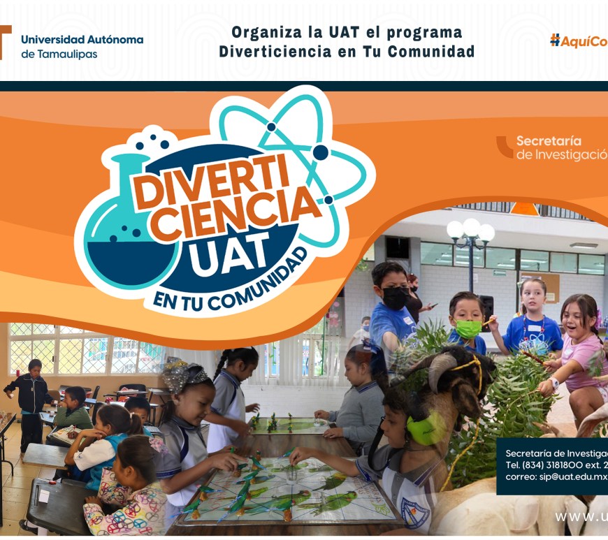 • Convoca a sus investigadores, docentes y estudiantes a participar en actividades que tienen como propósito acercar a la niñez de escuelas primarias el conocimiento científico que genera la casa de estudios. La Universidad Autónoma de Tamaulipas (UAT) invita a sus docentes, investigadores y estudiantes a participar en el programa Diverticiencia UAT en tu Comunidad, que tiene como propósito acercar el conocimiento científico que se … Continúa leyendo Organiza la UAT el programa Diverticiencia en tu Comunidad