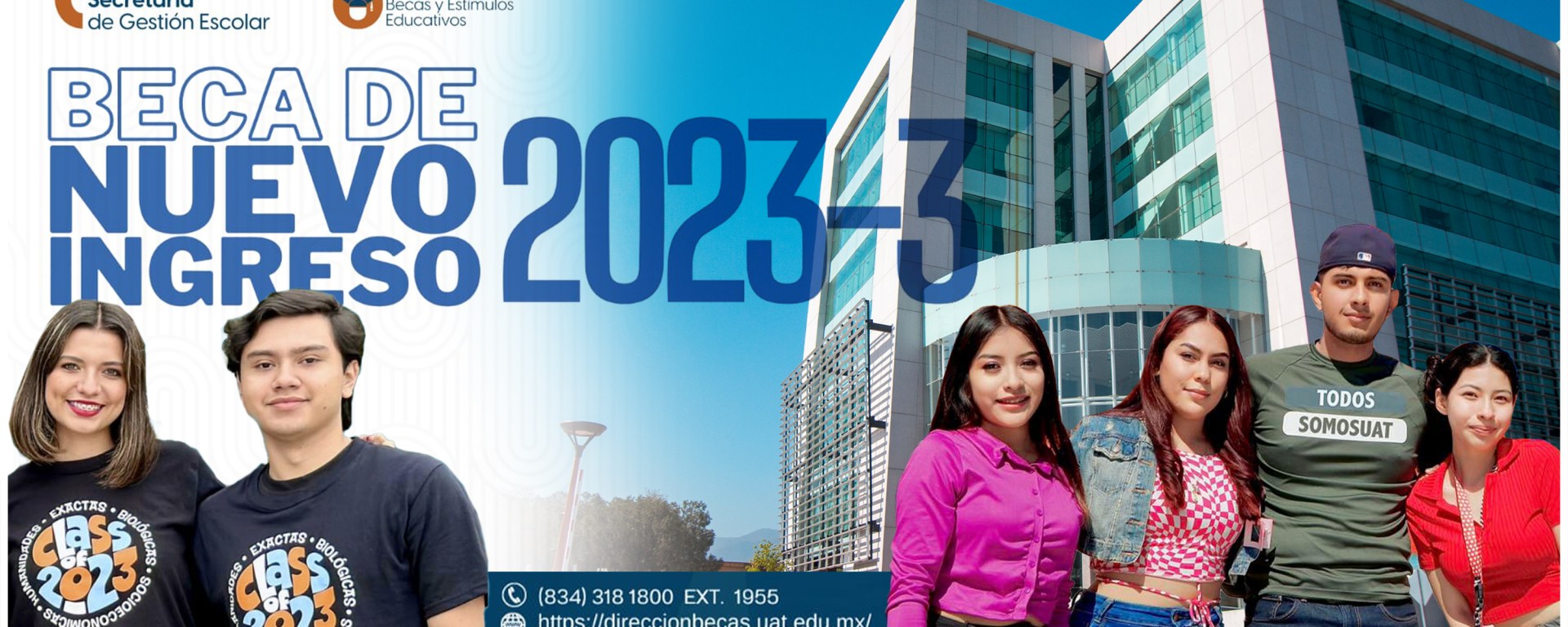 La Universidad Autónoma de Tamaulipas (UAT), por medio de la Secretaría de Gestión Escolar y la Dirección de Becas y Estímulos Educativos, invita a estudiantes que ingresarán a esta casa de estudios a participar en el programa de Becas de Nuevo Ingreso correspondiente al periodo 2023-3, es decir, el ciclo de otoño.