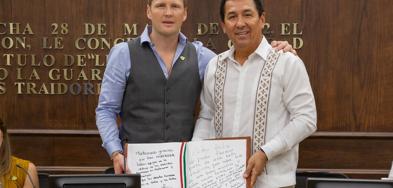 En el mensaje que dirigió a los matamorenses, a través de su firma en el libro, Alexander Acha escribió: “Estoy muy feliz de formar parte de esta bella tradición, pero sobre todo de esta buena iniciativa y noble causa; fortalecer la relación entre estas dos ciudades hermanas, fomentar su intercambio cultural y comercial, gracias por invitarme a promover estos bellos valores.
