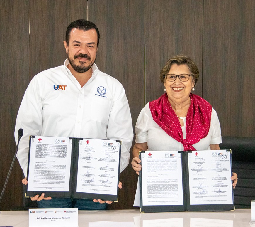 La Universidad Autónoma de Tamaulipas (UAT) y la delegación estatal de la Cruz Roja Mexicana formalizaron un convenio de colaboración que permitirá a los prestatarios de servicio social de las carreras de Medicina, Enfermería y Psicología de Matamoros apoyar en las acciones que realiza la benemérita institución.  En una ceremonia celebrada en la sala ejecutiva del Centro de Gestión del Conocimiento del Campus Victoria, el … Continúa leyendo La UAT y Cruz Roja Tamaulipas firman convenio de colaboración en servicio social
