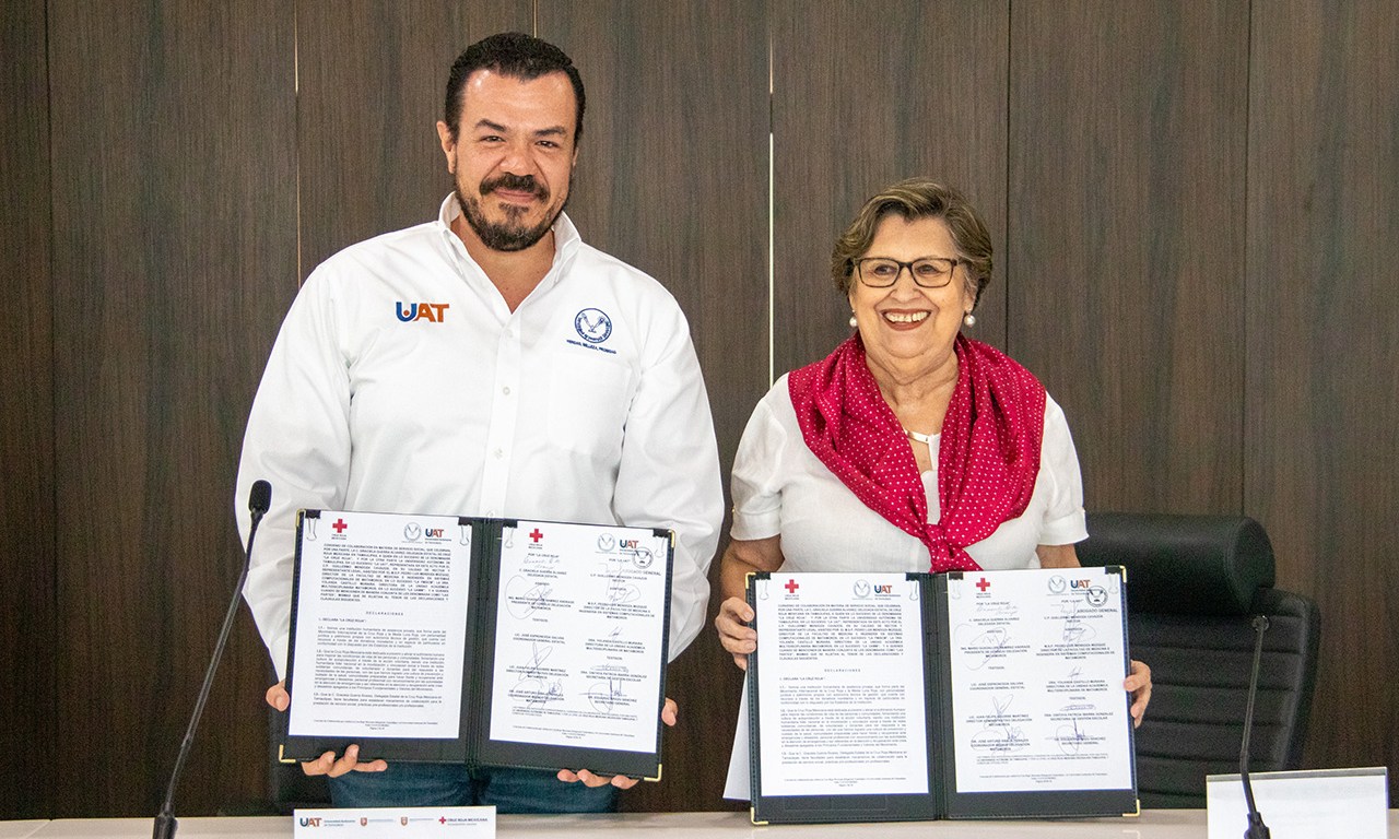La Universidad Autónoma de Tamaulipas (UAT) y la delegación estatal de la Cruz Roja Mexicana formalizaron un convenio de colaboración que permitirá a los prestatarios de servicio social de las carreras de Medicina, Enfermería y Psicología de Matamoros apoyar en las acciones que realiza la benemérita institución.