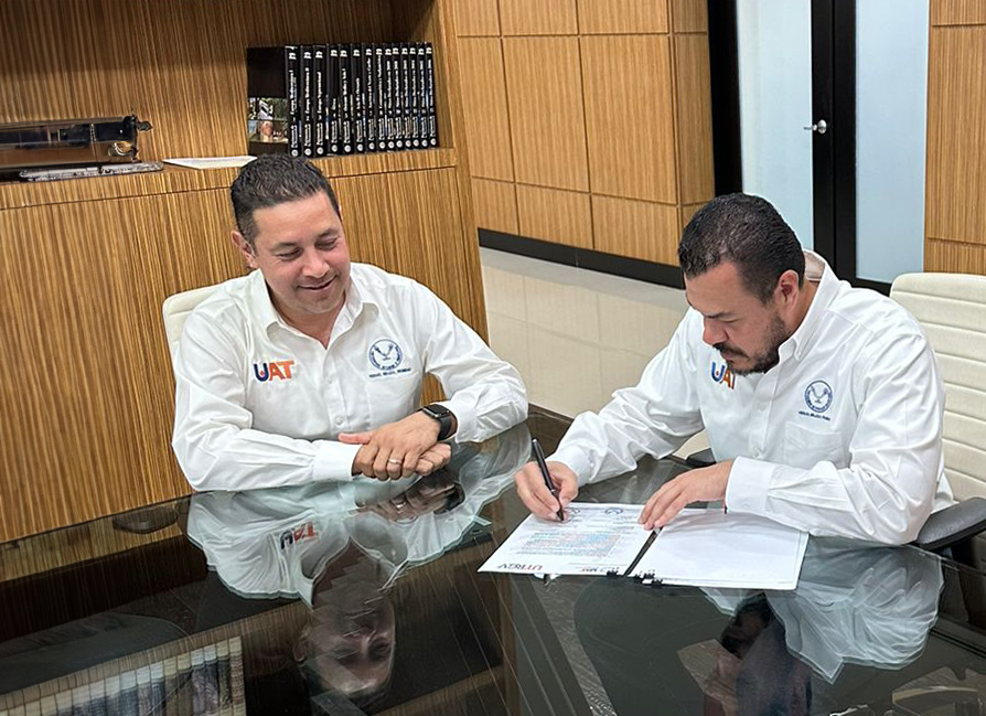 Por parte de la UAT, el rector Guillermo Mendoza firmó el documento en la sala de juntas del Centro de Gestión del Conocimiento en Ciudad Victoria, asistido por el Mtro. Mauricio Pimentel Torres, secretario de Vinculación, y la Dra. María de Jesús Hernández Rangel, directora de Relaciones Internacionales.