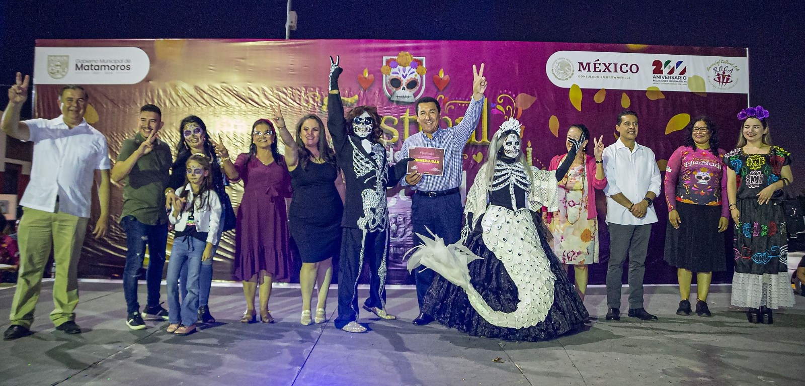 En la ceremonia de inicio del Festival que se realizará del 27 de Octubre al 05 de Noviembre, el Presidente Municipal fue acompañado por la Ministra Judith Arrieta Munguía, del Consulado de México en Brownsville, Texas, así como también por funcionarios municipales e integrantes del R. Ayuntamiento.