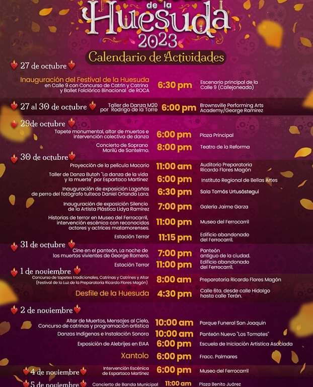 El Municipio de Matamoros da ha conocer la programación del Festival de la Huesuda con eventos gratuitos para toda la familia.