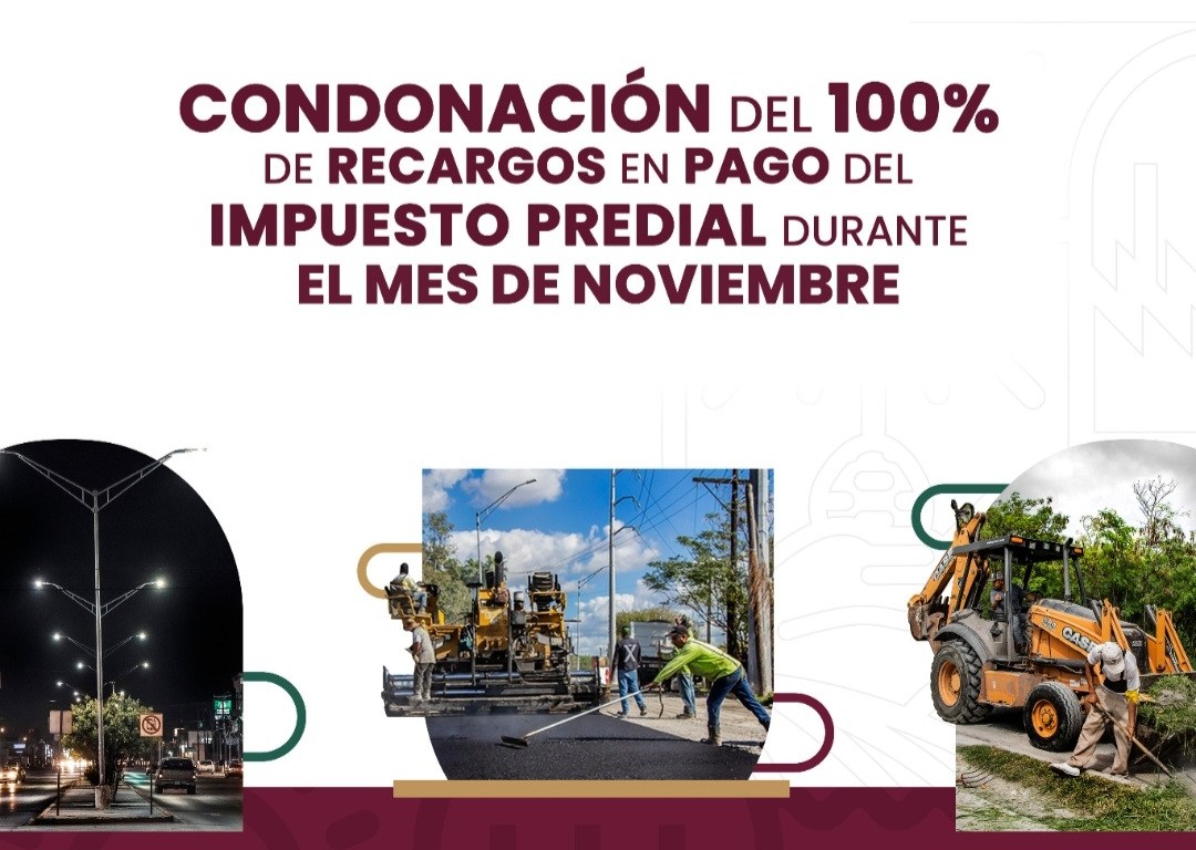 Durante el mes de noviembre, el Gobierno de Matamoros mantiene la condonación del 100 % de los recargos en el pago del Impuesto Predial.