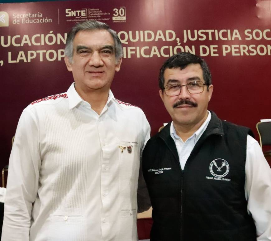 El rector de la UAT Dámaso Anaya Alvarado acompañó al gobernador Américo Villarreal Anaya y a la secretaria de Educación Pública, Leticia Ramírez Amaya en la ceremonia de entrega de equipo tecnológico y nombramientos de basificación a personal docente y administrativo de la Secretaría de Educación de Tamaulipas. Continúa leyendo ACUDE EL RECTOR DE LA UAT A ENTREGA DE EQUIPO TÉCNICO DE LA SEP Y NOMBRAMIENTOS