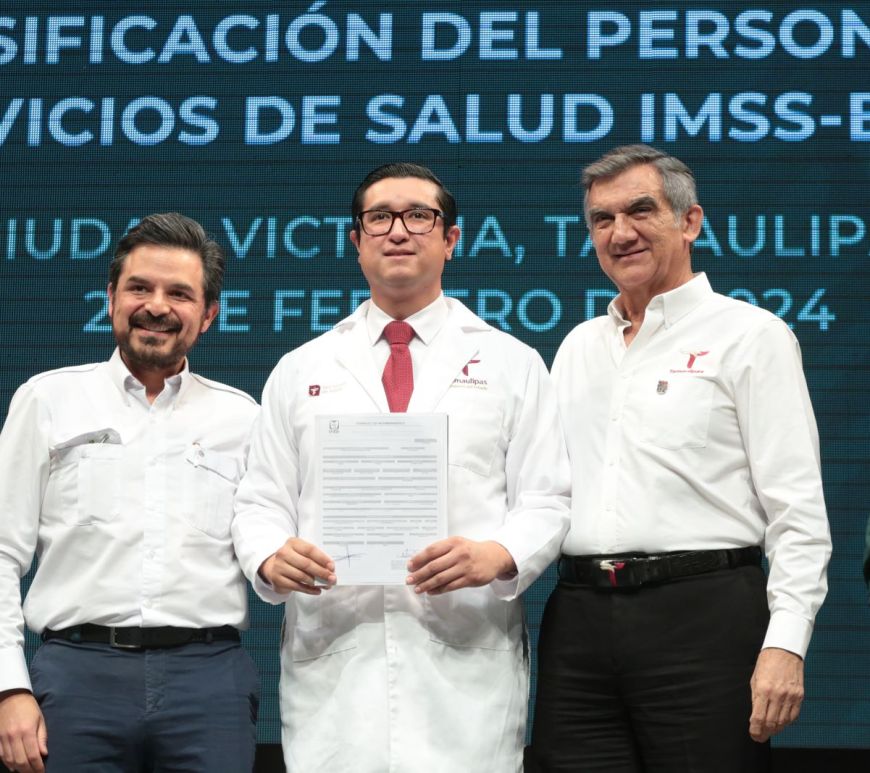 Presiden el director general del IMSS, Zoé Robledo  y el gobernador Américo Villarreal entrega de nombramientos Febrero 23 de 2024 Ciudad Victoria, Tamaulipas.-  Que no los vuelvan a llamar precarios, porque su trabajo era de calidad, les dijo Zoé Robledo director general del IMSS a las y los trabajadores del sector salud que recibieron hoy su basificación, al tiempo que el gobernador Américo Villarreal se … Continúa leyendo Se hace justicia en Tamaulipas, basifican a 915 trabajadores del sector salud