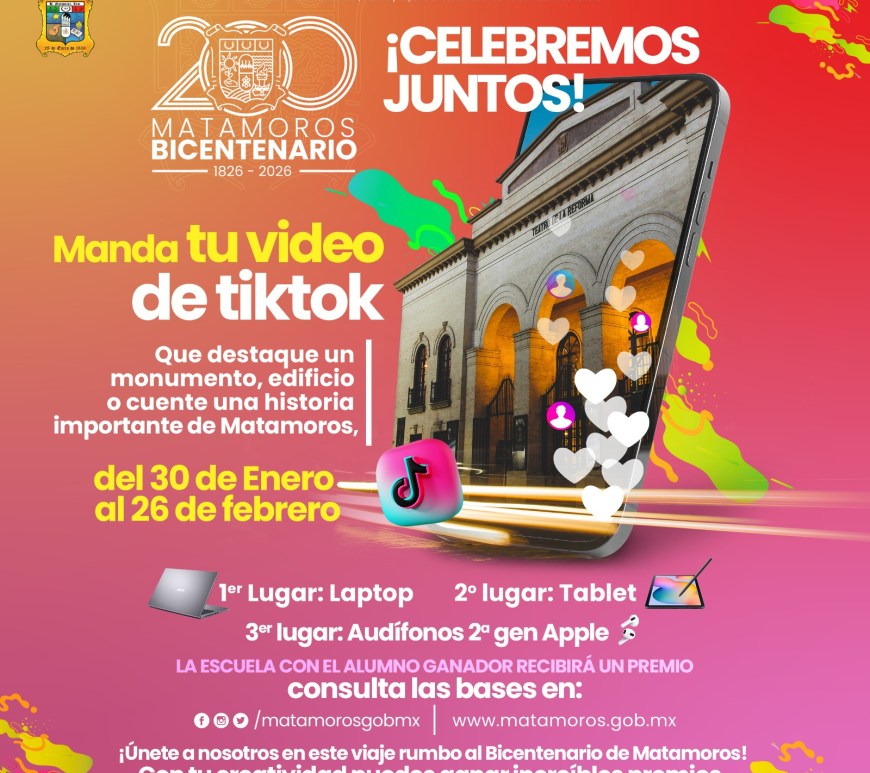 El municipio de Matamoros invita al concurso de Tik Tok «Rumbo al Bicentenario de Matamoros».