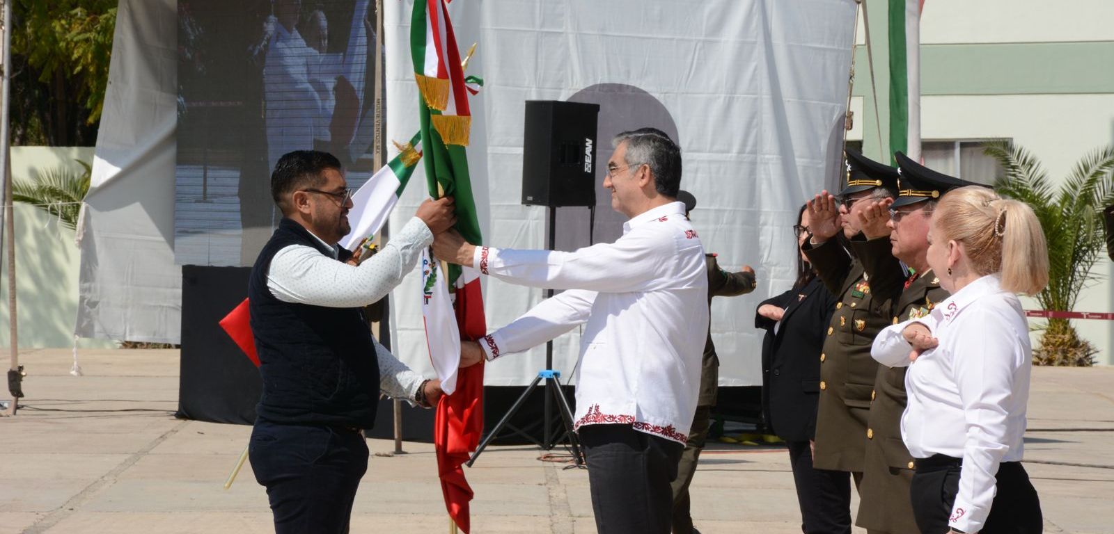 Ante la presencia del comandante de la Cuarta Región Militar, Maximiliano Cruz Ramos, y del comandante de la 48/a Zona Militar, Julio César Islas Sánchez, representantes de los Poderes Legislativo y Judicial, así como de alumnas y alumnos, el gobernador señaló la importancia de que el festejo por la bandera nacional tenga un significado más fuerte y duradero, y que sea una invitación al civismo, a los valores, a la solidaridad, a la participación social, al amor por México y por Tamaulipas.