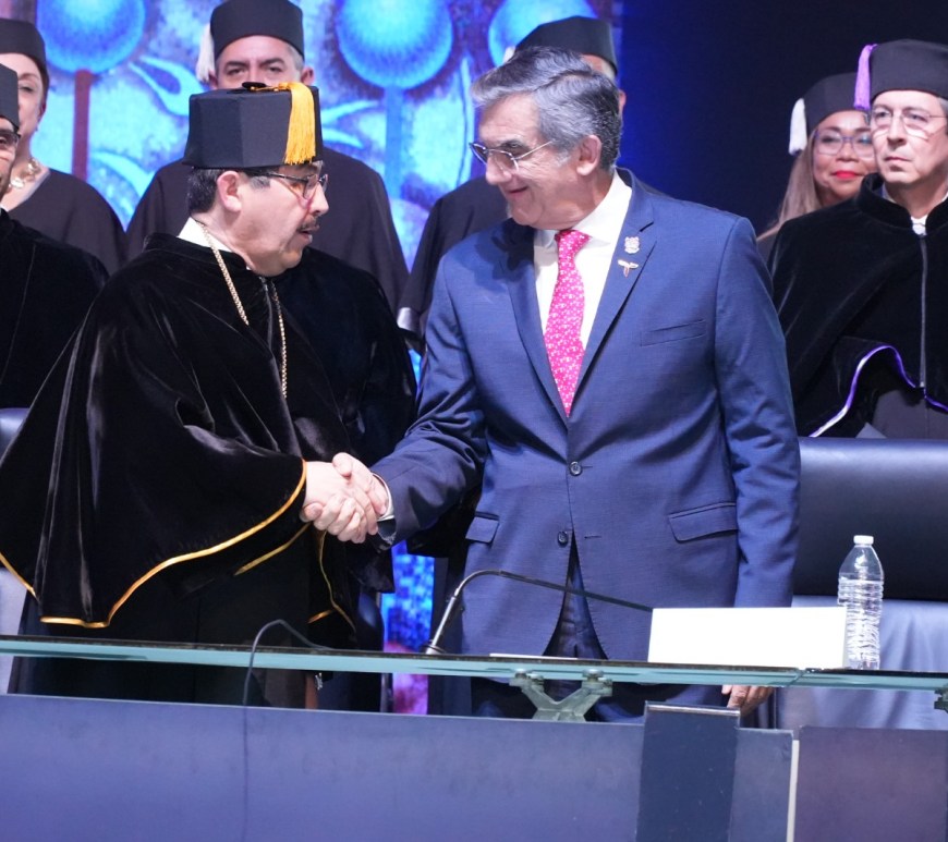 Teniendo como testigo de honor al gobernador del estado, Dr. Américo Villarreal Anaya, se llevó a cabo la ceremonia de Protocolo de Investidura del MVZ Dámaso Leonardo Anaya Alvarado, quien rindió el juramento como rector de la Universidad Autónoma de Tamaulipas (UAT) para el periodo 2024-2028. En el marco de la Asamblea Universitaria Solemne realizada en el Gimnasio Multidisciplinario del Campus Victoria, el gobernador felicitó … Continúa leyendo Dámaso Anaya rinde juramento como rector de la UAT ante la asamblea universitaria