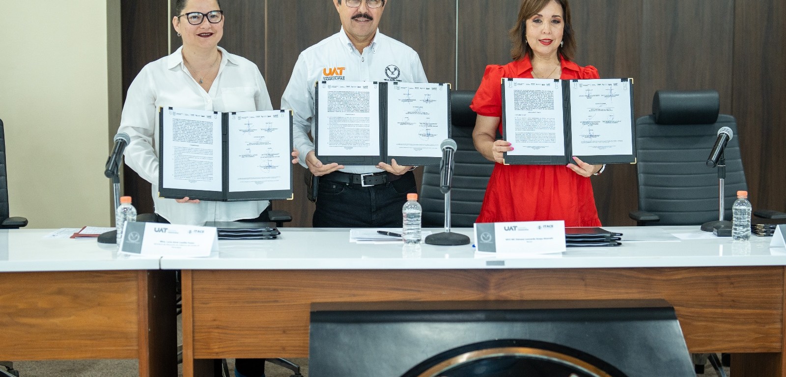 El rector de la Universidad Autónoma de Tamaulipas (UAT), MVZ Dámaso Leonardo Anaya Alvarado, presidió la firma del convenio marco de colaboración entre la máxima casa de estudios del estado y el Instituto Tamaulipeco de Capacitación para el Empleo (ITACE), para impulsar de manera específica programas de educación dual, servicio social, prácticas profesionales, capacitación laboral y la incorporación de proyectos académicos y de investigación relacionados con el desarrollo educativo, económico y social de la entidad.