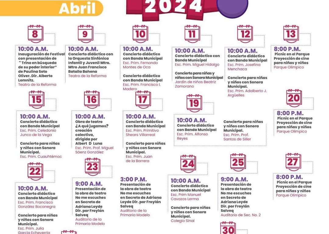 El Municipio de Matamoros a través de la Secretaría de Educación, Cultura y Deporte en coordinación con el Sistema DIF dan a conocer la programación de actividades incluidas en el marco del 6to. Festival y Encuentro para Niñas y Niños «Bebeleche» que se realiza del 8 al 30 de abril del presente año.